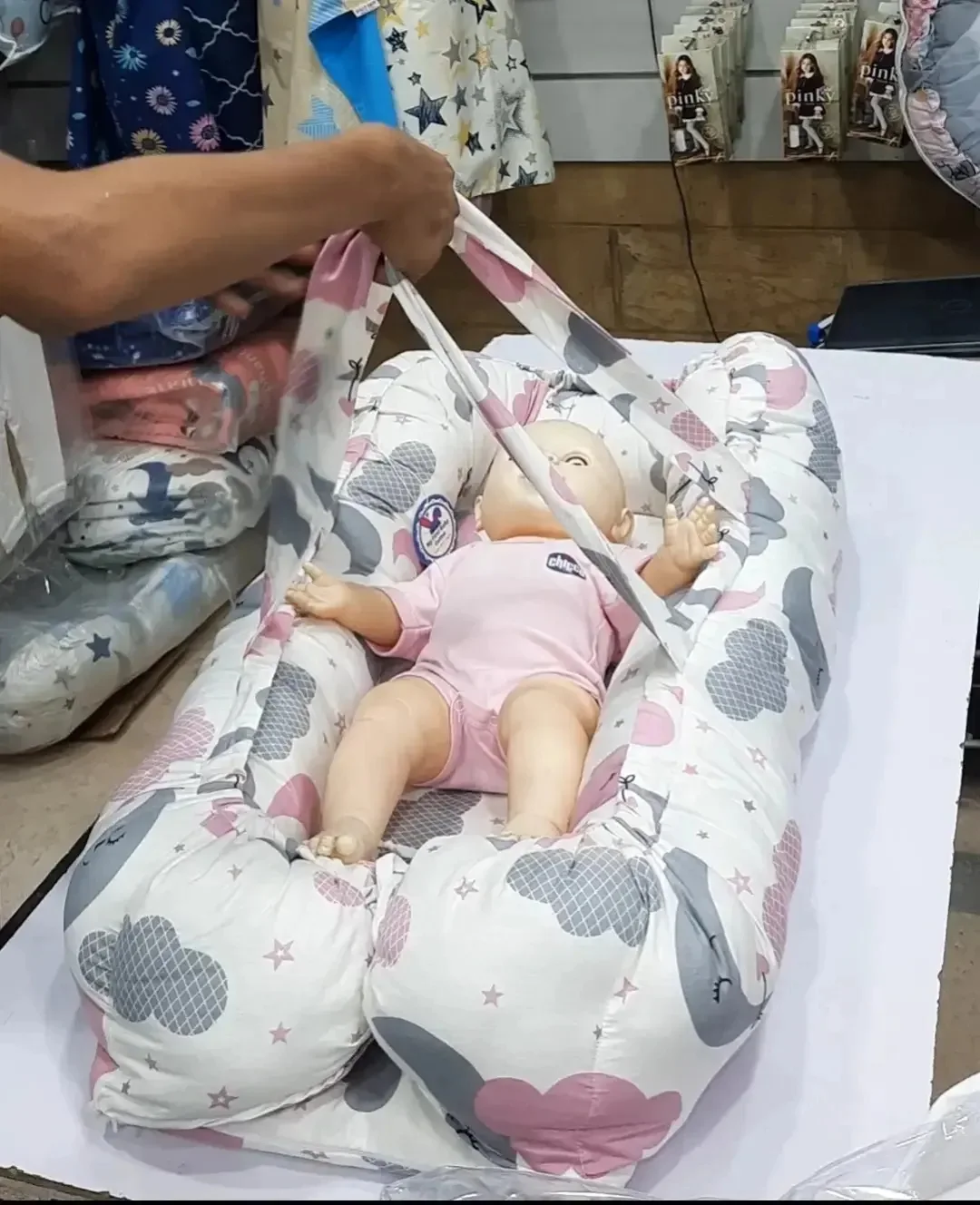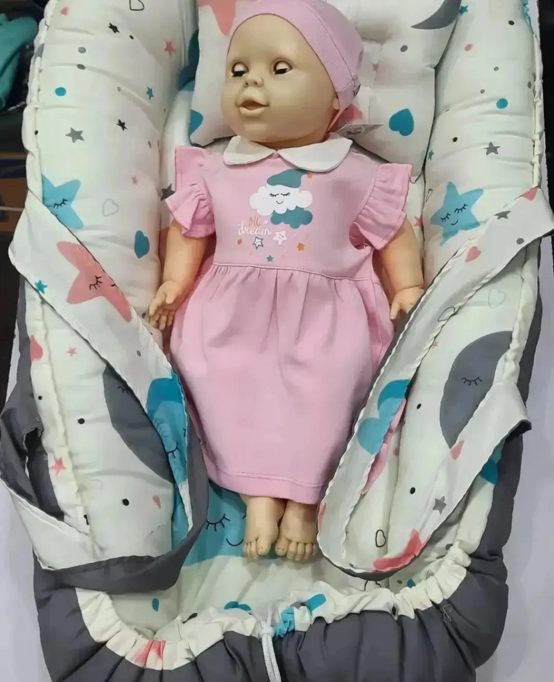 البيبي نيست عباره عن سرير متنقل مذود بدعامه خشب لدعم ضهر البيبي ومبطن بالفايبر عالي الكثافه وخامة القماش قطن بيسهل عليكي التنقل بالبيبي داخل البيت وبيحمي البيبي من الوقوع المتكرر من السرير وليه يد بيتشال منها وليه سوسته عشان لو حبيتي تغسليه وليه ناموسيه تحمي البيبي من الحشرات