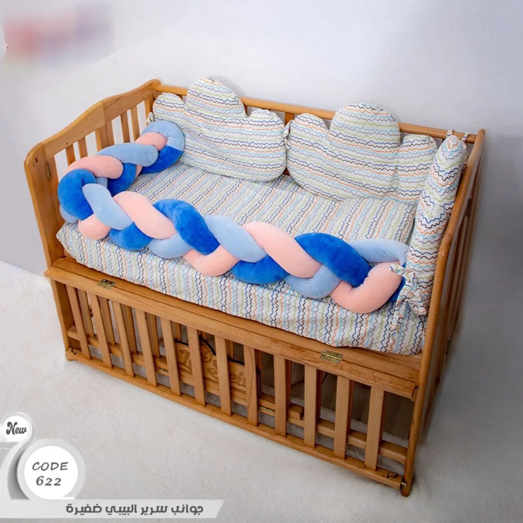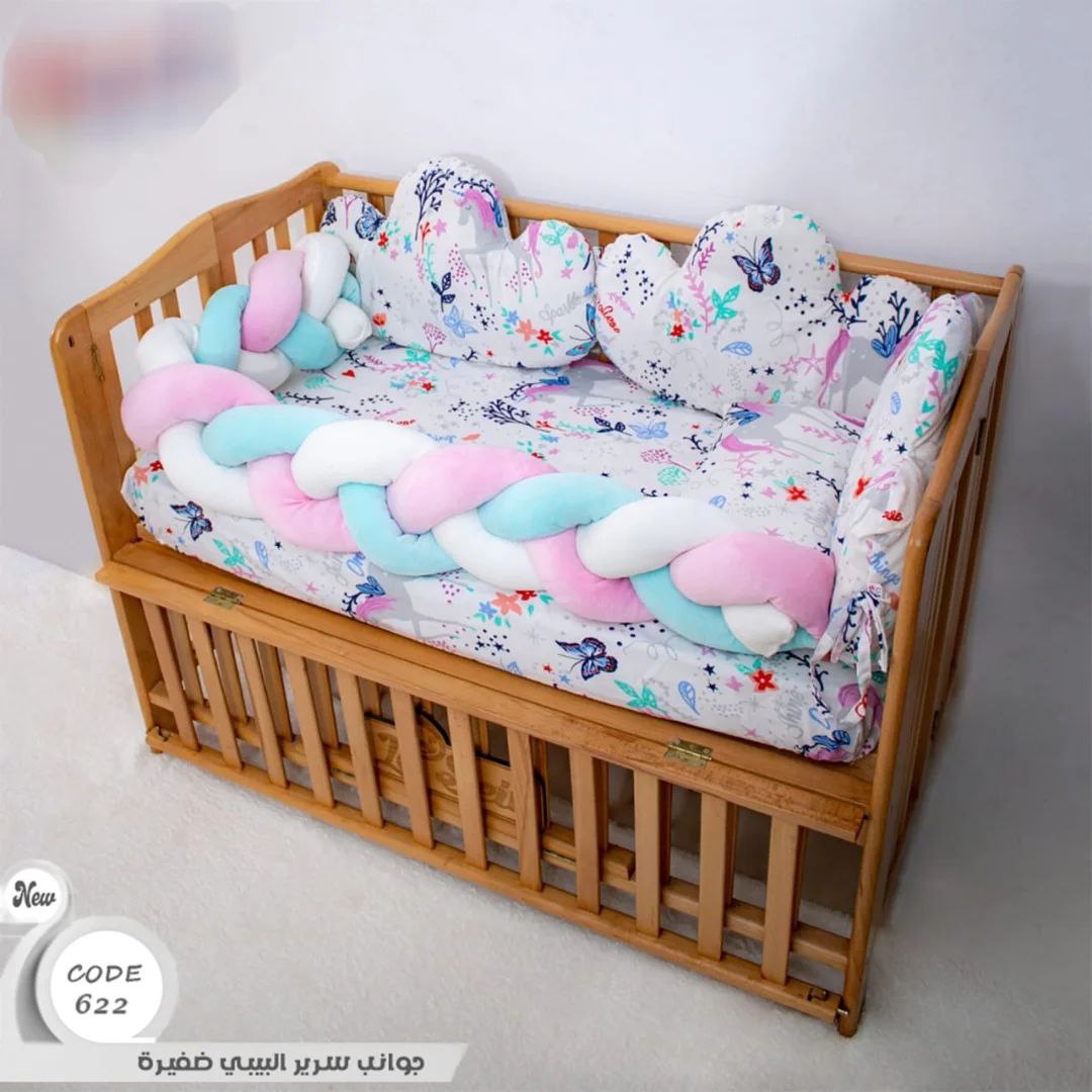 الجوانب الضفيره طقم 6 قطع عباره عن ملايه واتنين مخده سحابه ومخده مستطيله ومنظم وضفيره الخامه قطن 100% مناسبه لجميع مقاسات سراير البيبي متوفره بألوان مبهجه