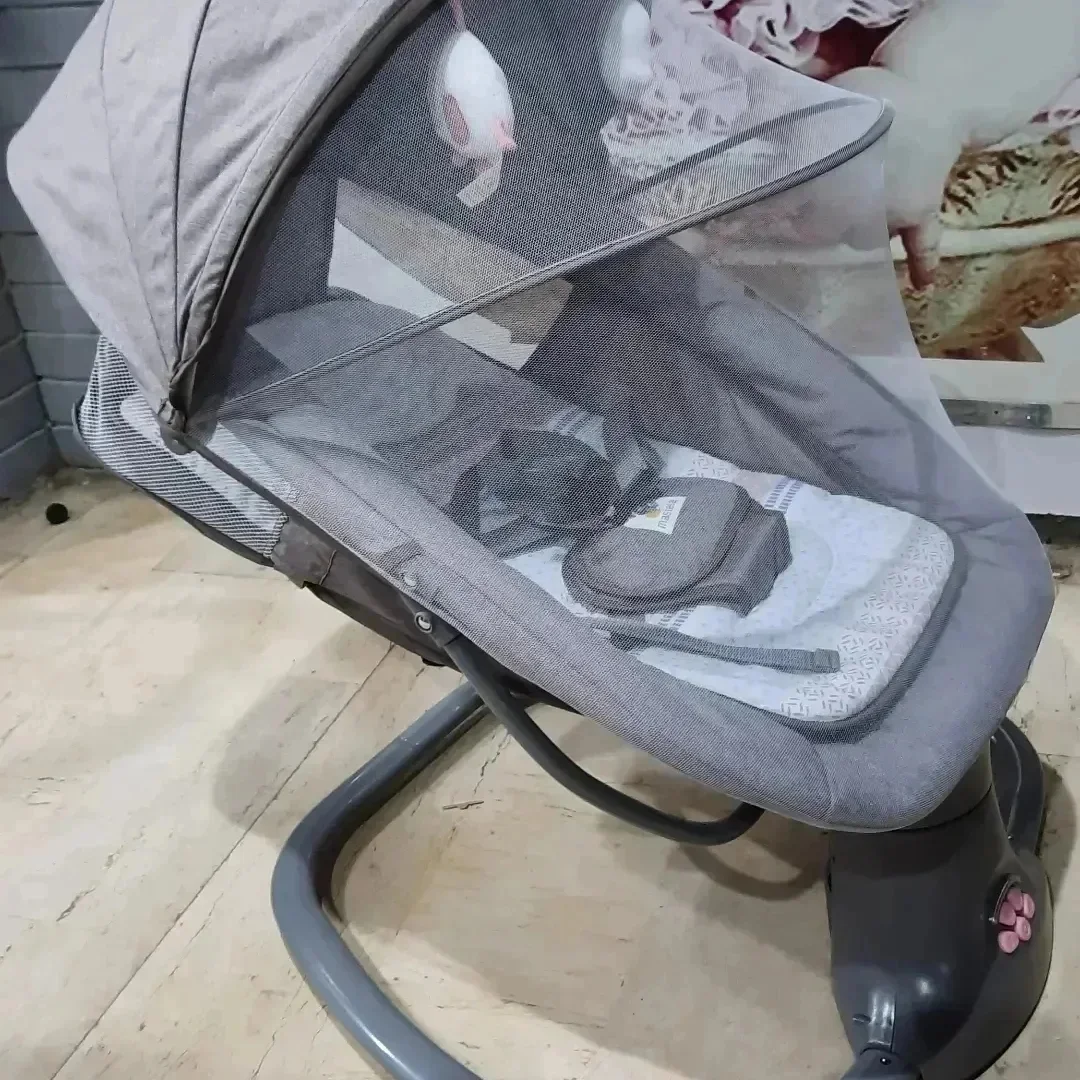 ليها مستويات لسرعة الدوران وليها مستويات لارتفاع الكرسي بالتالي الكرسي بيتحول لسرير فيها حزام امان وفيها بار العاب لتنمية حاسة البصر واللمس عند البيبي وفيها نغمات مختلفه ونقدر نربطها بلوتوث اطلب مننا الفيديو علي الطبيعه من ايقونة الواتساب المتاحه في الموقع