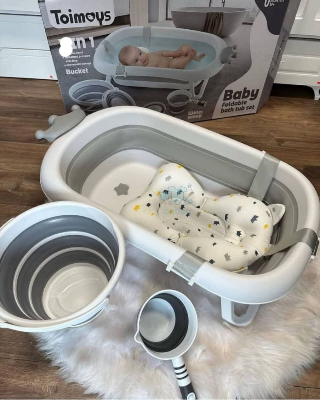 عرض البانيو السيليكون عباره عن بانيو بترمومتر ومعاه جردل ومعاه مغرفه ومعاه كرسي سيليكون مناسب من عمر يوم لحد سنتين