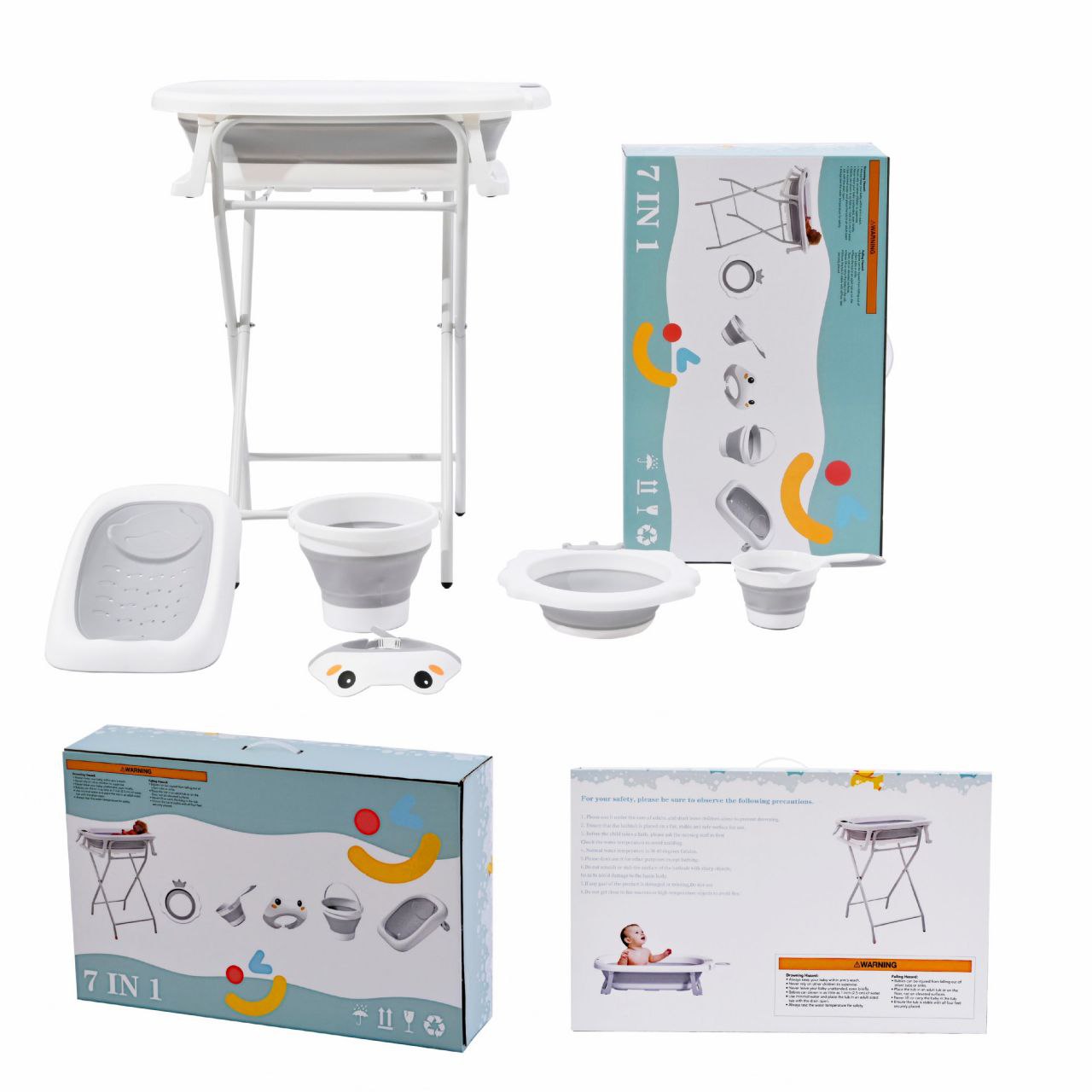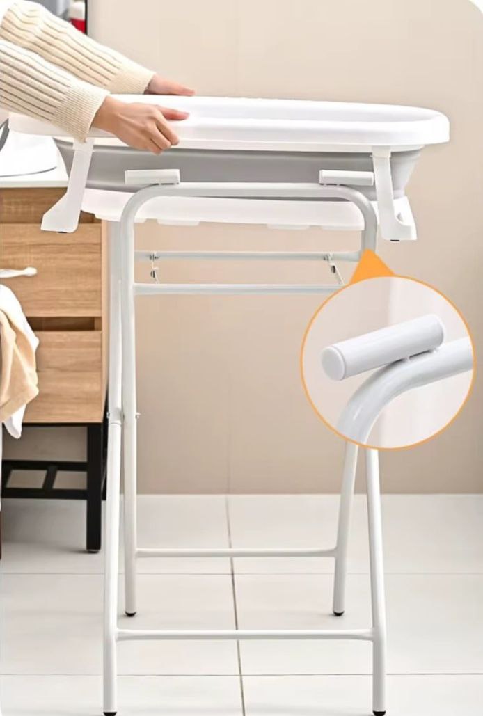 عرض البانيو بالاستاند سبع قطع عباره عن بانيو سيليكون وكرسي شاور سيليكون وشاور كاب وجردل ومغرفه وستاند معدن هيساعدك كتير تتحكمي في البيبي وقت الشاور وكمان سهل الطي والتخزين