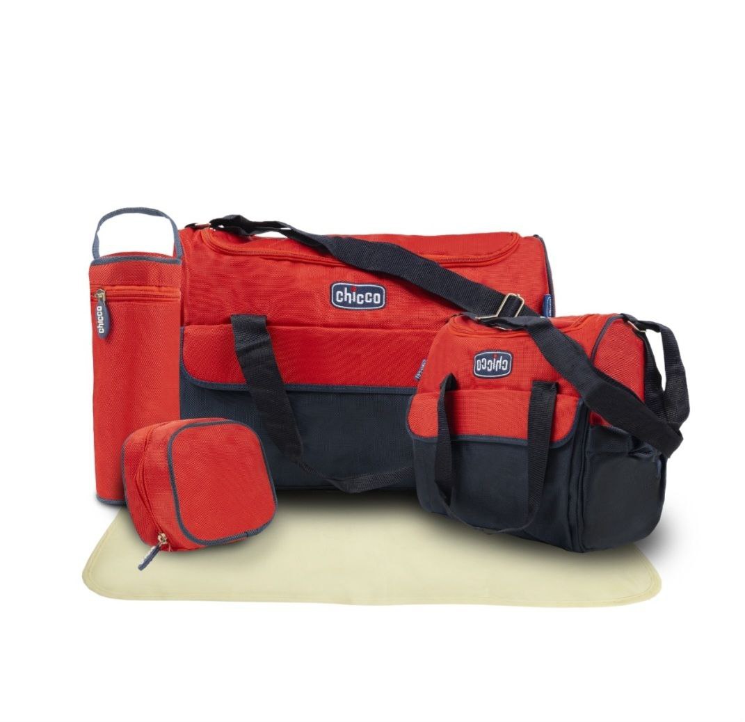 طقم هاند باج شيكو خمس قطع عباره عن شنطتين كبار وكافر للبيبرونه ومفرش غيار وحافظه للأكل الخامه ووتر بروف
